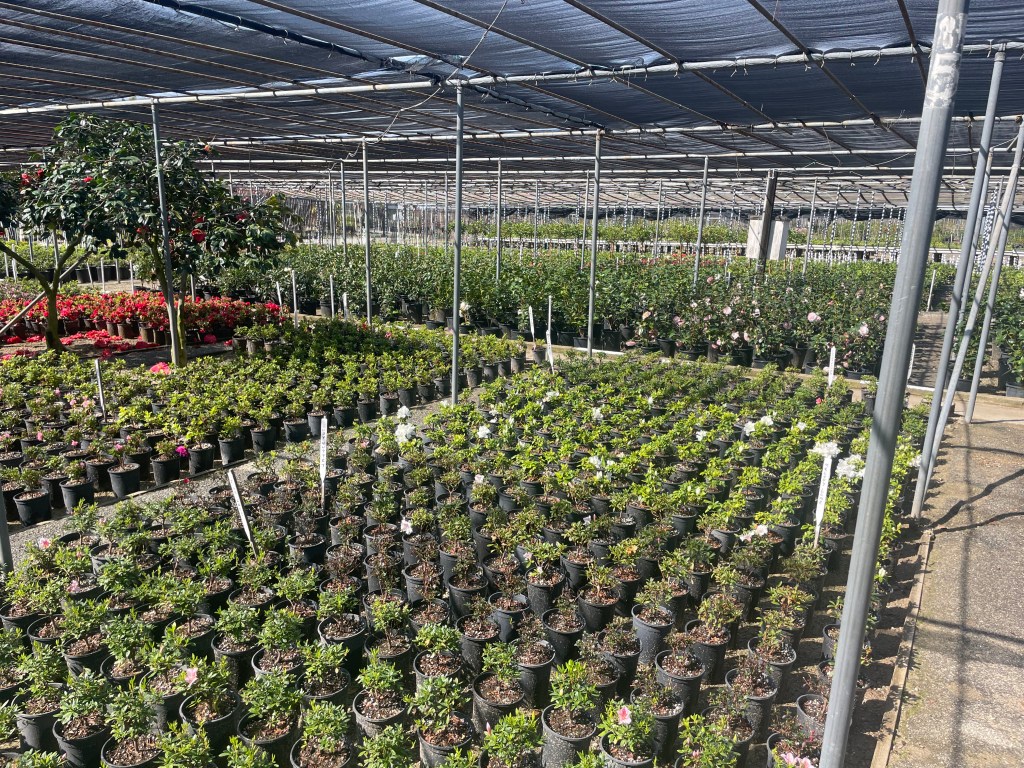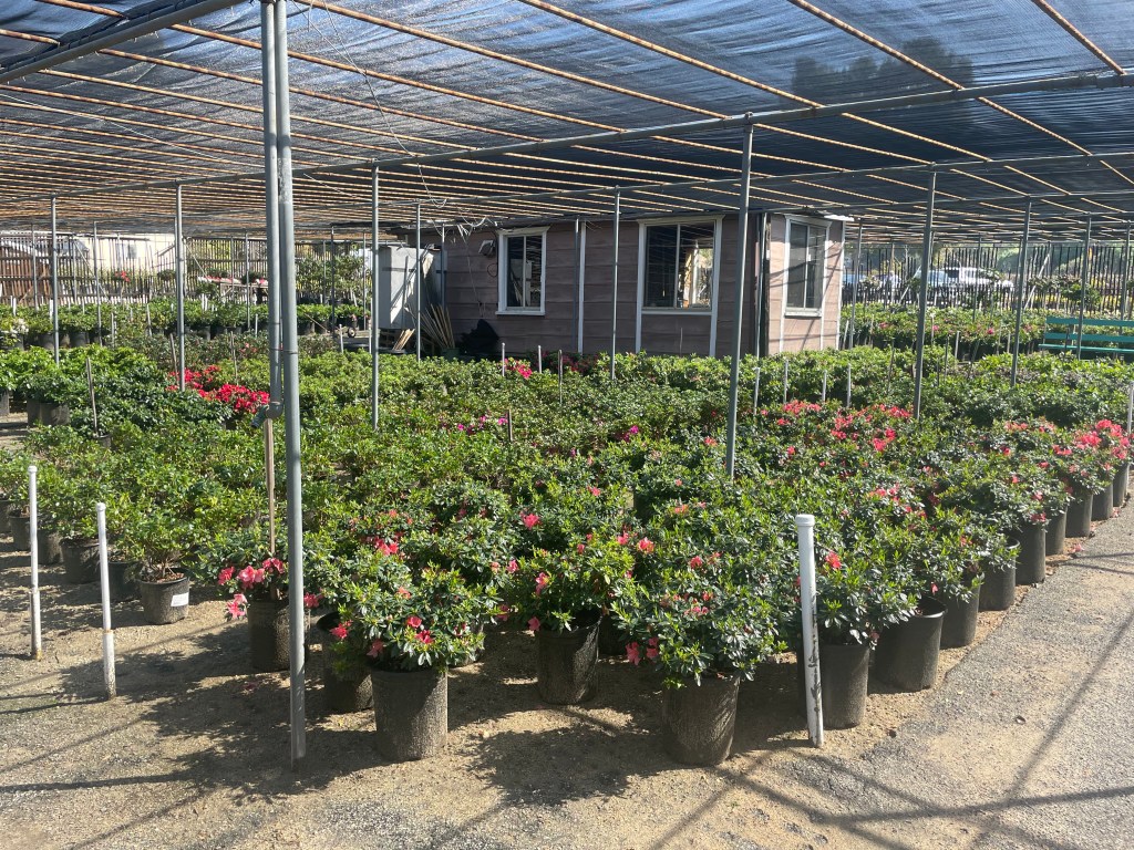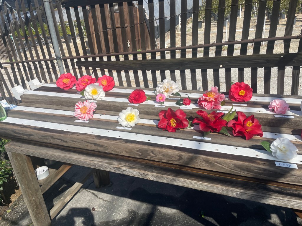 Asking around and doing some online research he settled on Nuccio’s Nurseries as the vendor of choice, and a darn good decision. Nuccio’s isn’t just any neighborhood garden retailer. They specialize in camellias and azaleas and offer many rare varieties in addition to most popular varieties, including a number of their own proprietary cultivars. An institution among camellia and azalea lovers, we overheard shoppers from as far away as Georgia and Washington state telling the staff that visiting Nuccio’s was on their gardening bucket list.